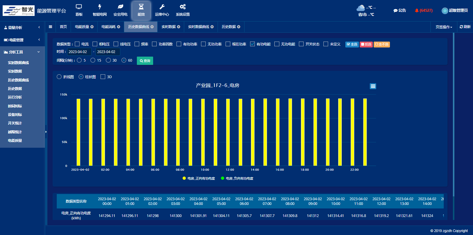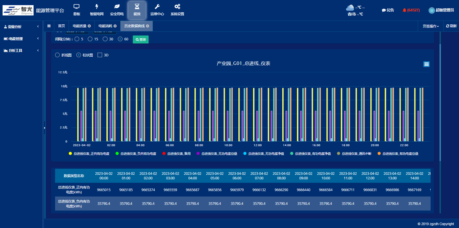 对采集的数据进行精细化能源管理,采用分类、分层的数据结构,通过报表等分析手段,评估主要能耗设备的效率,逐步建立能耗指标绩效考核。