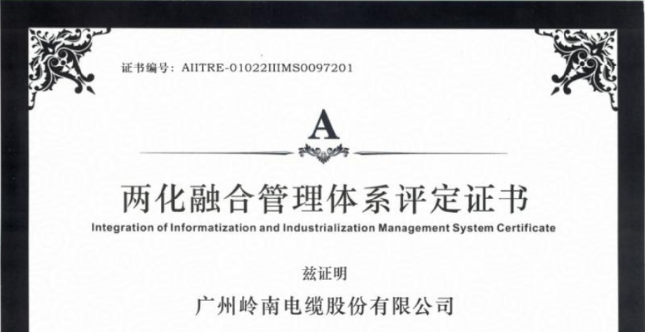 近日,FUN88乐天使在线登录控股公司广州岭南电缆股份有限公司(以下简称“岭南电缆”)顺利通过国家工业和信息化部《信息化和工业化融合管理体系 要求》(GB/T 23001-2017)及《信息化和工业化融合管理体系 新型能力分级要...