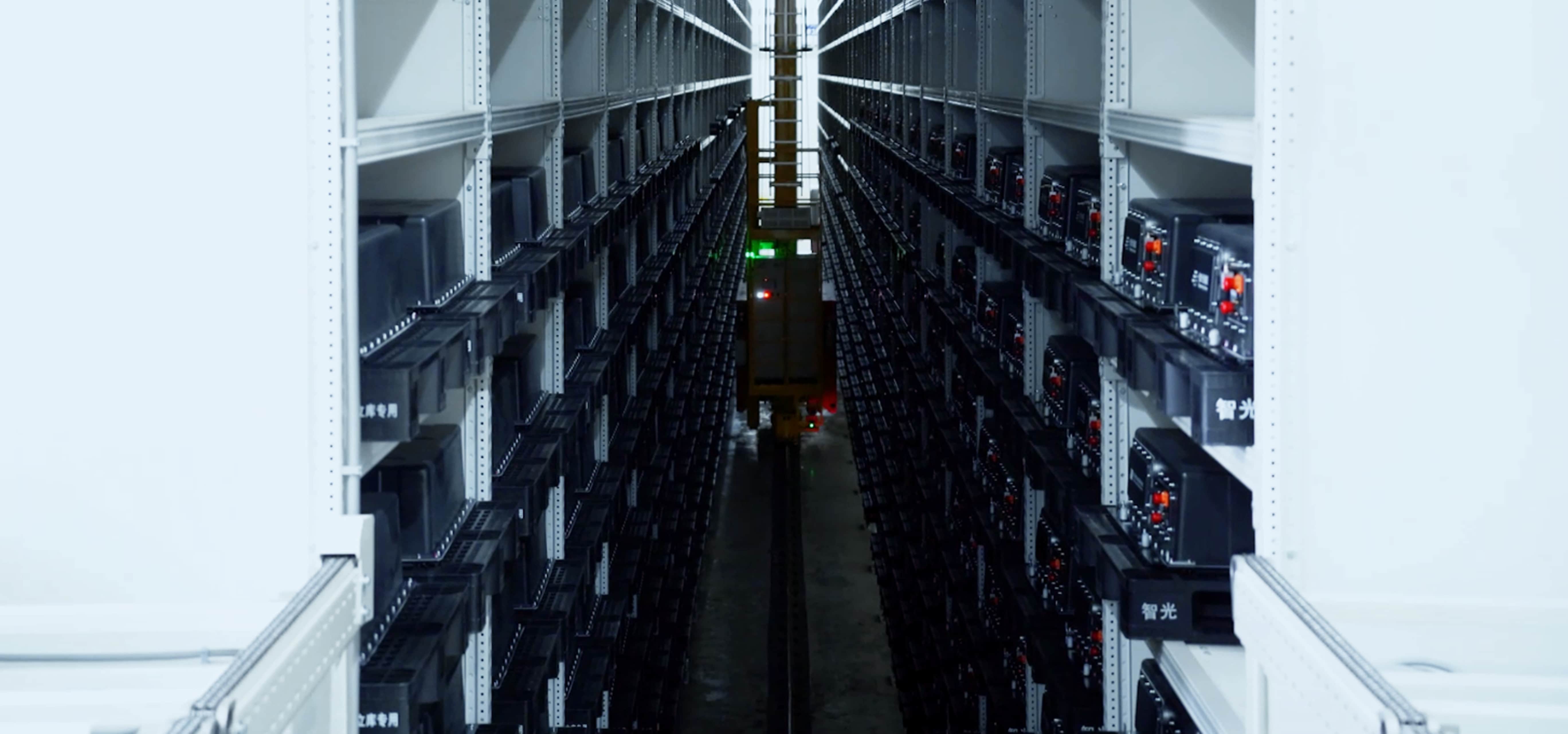在智慧仓储中枢,WMS系统指挥着立库货架高效运作,超过160MWh的储能容量被浓缩在垂直空间中,液冷PACK与风冷PACK分区域智能存取。这种空间集约化设计有效利用高层空间,配合AGV无人搬运系统,形成"黑灯仓库"的科技图景。